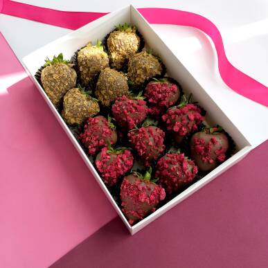 - Качество: Только настоящий бельгийский шоколад и отборная клубника.