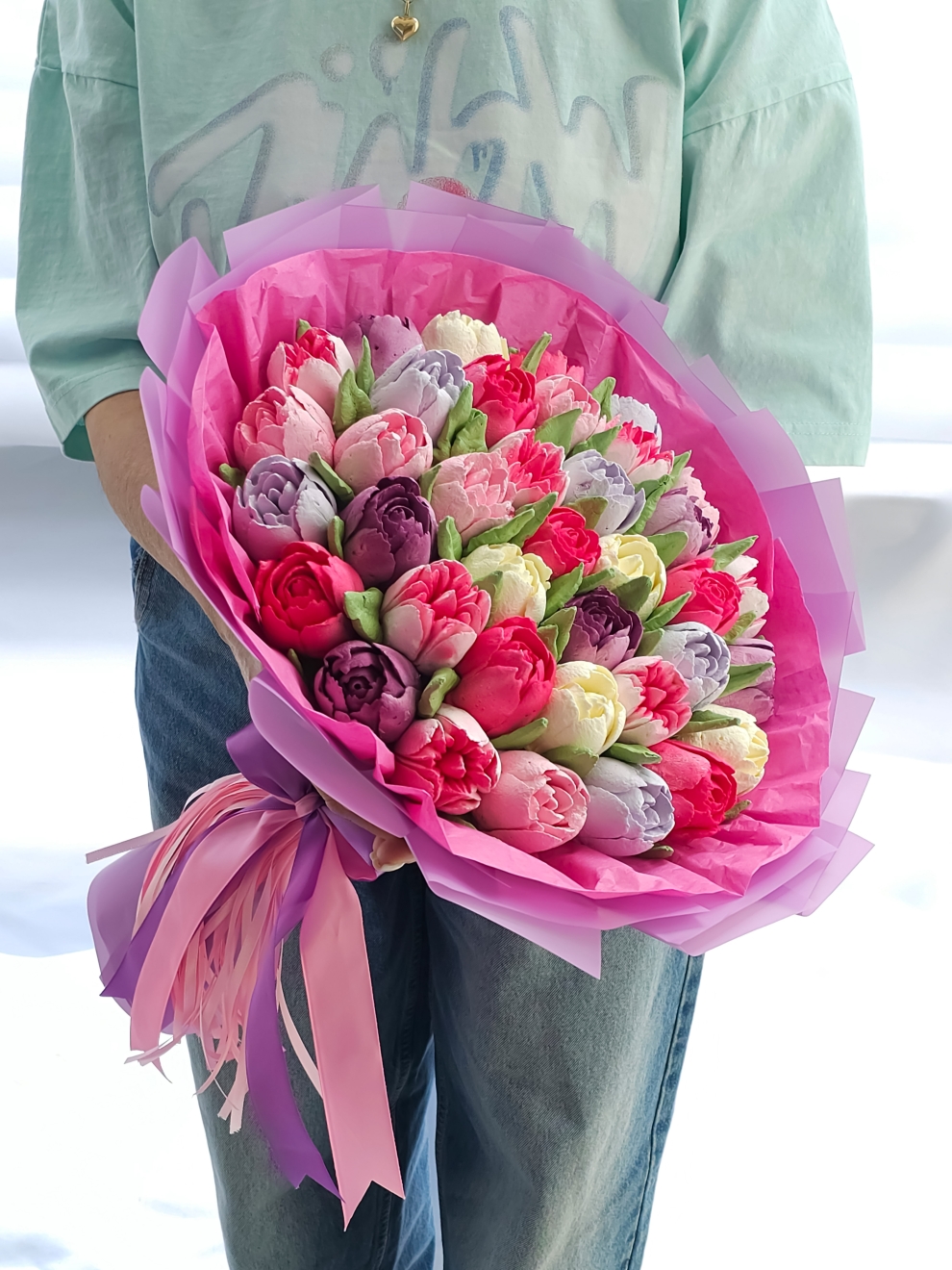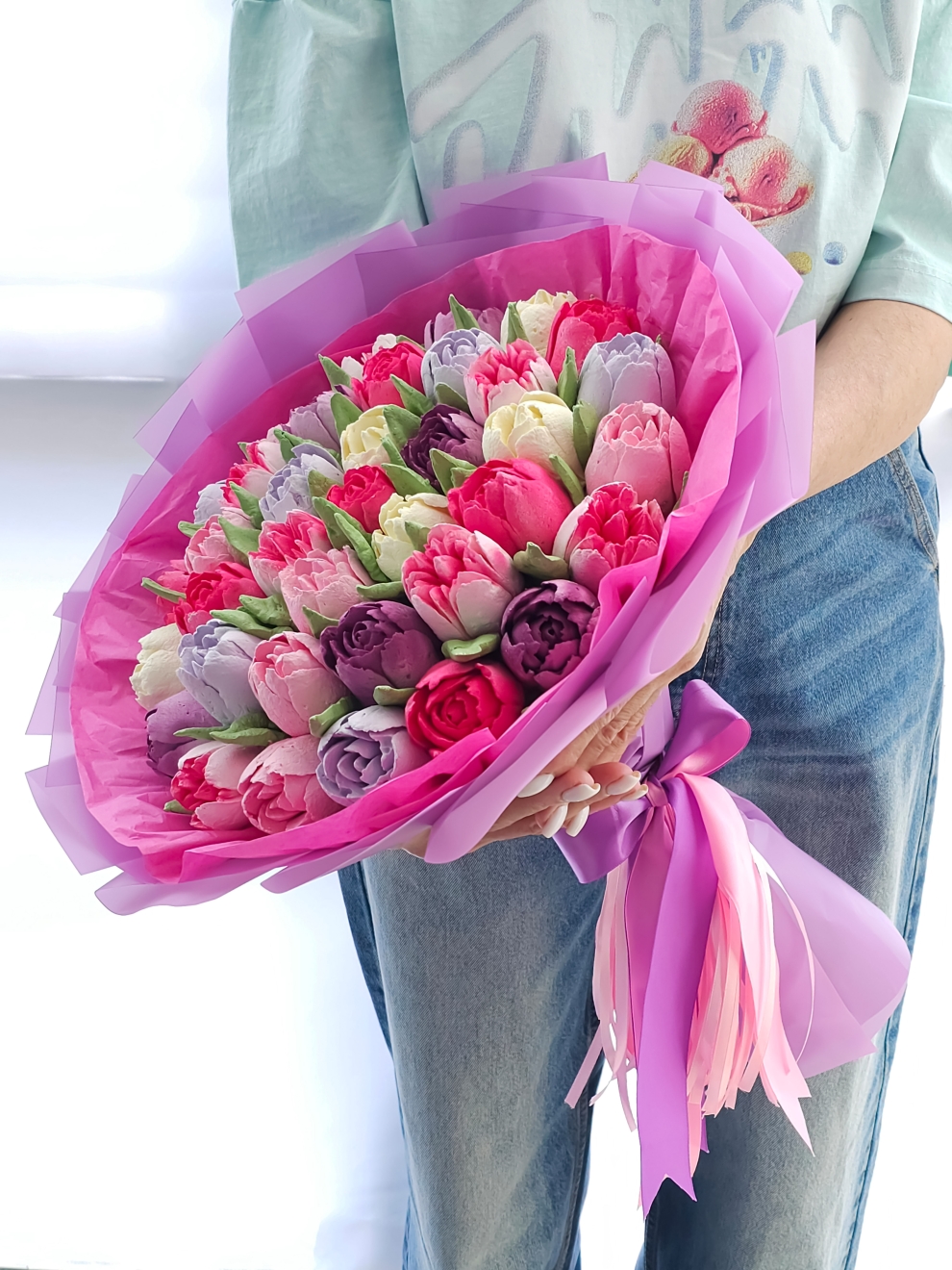 Изысканный зефирный букет «Магия тюльпанов» представляет собой совершенное сочетание весенней свежести и кондитерского мастерства, предлагая вам заказать букет из зефира в Москве самого высокого качества. Эти нежные цветы из зефира созданы вручную так искусно, что их сложно отличить от настоящих голландских тюльпанов, только что срезанных в саду. Решение купить букет из зефира из этой коллекции позволит вам сделать оригинальный подарок, который наполнит атмосферу теплом и нежностью. Каждое изделие — это кропотливая ручная работа, где натуральный состав из яблочного пюре и агар-агара гарантирует не только красоту, но и пользу для здоровья.