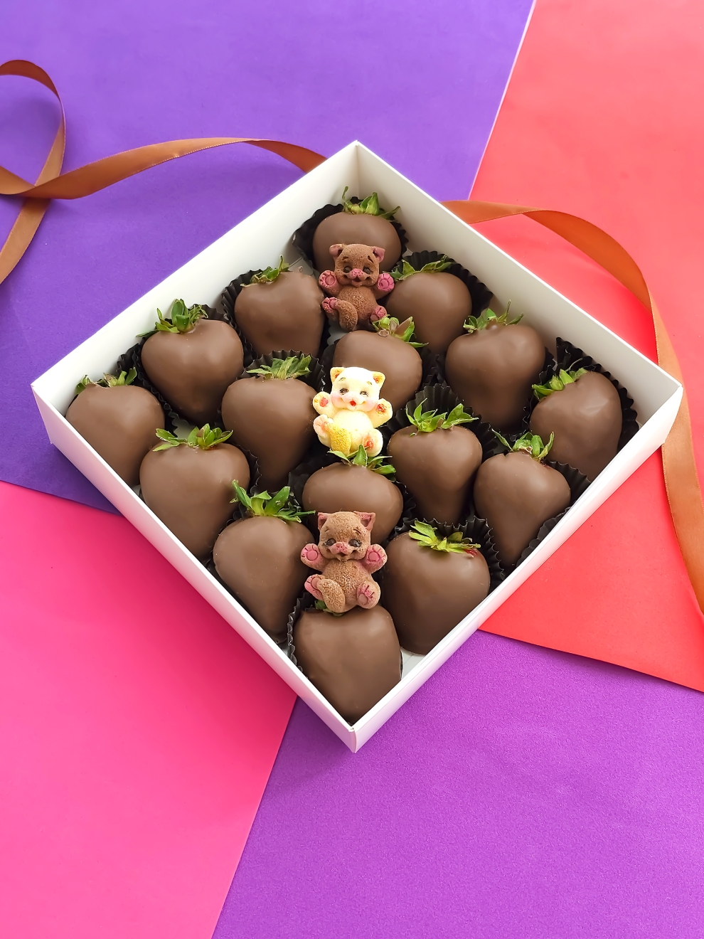 Очаровательный и милый набор «Мишка» с эксклюзивным ягодным дизайном создан для самых добрых и трогательных моментов. Если вы ищете оригинальный десерт для ребенка в Москве или хотите удивить любимую девушку необычным оформлением, клубника с декором в виде милых медвежат станет хитом праздника. В Zarifsweet мы предлагаем заказать клубнику в шоколаде с авторским оформлением ручной работы, которое вызывает улыбку. Мы используем только натуральный шоколад и безопасные пищевые красители на основе ягод.