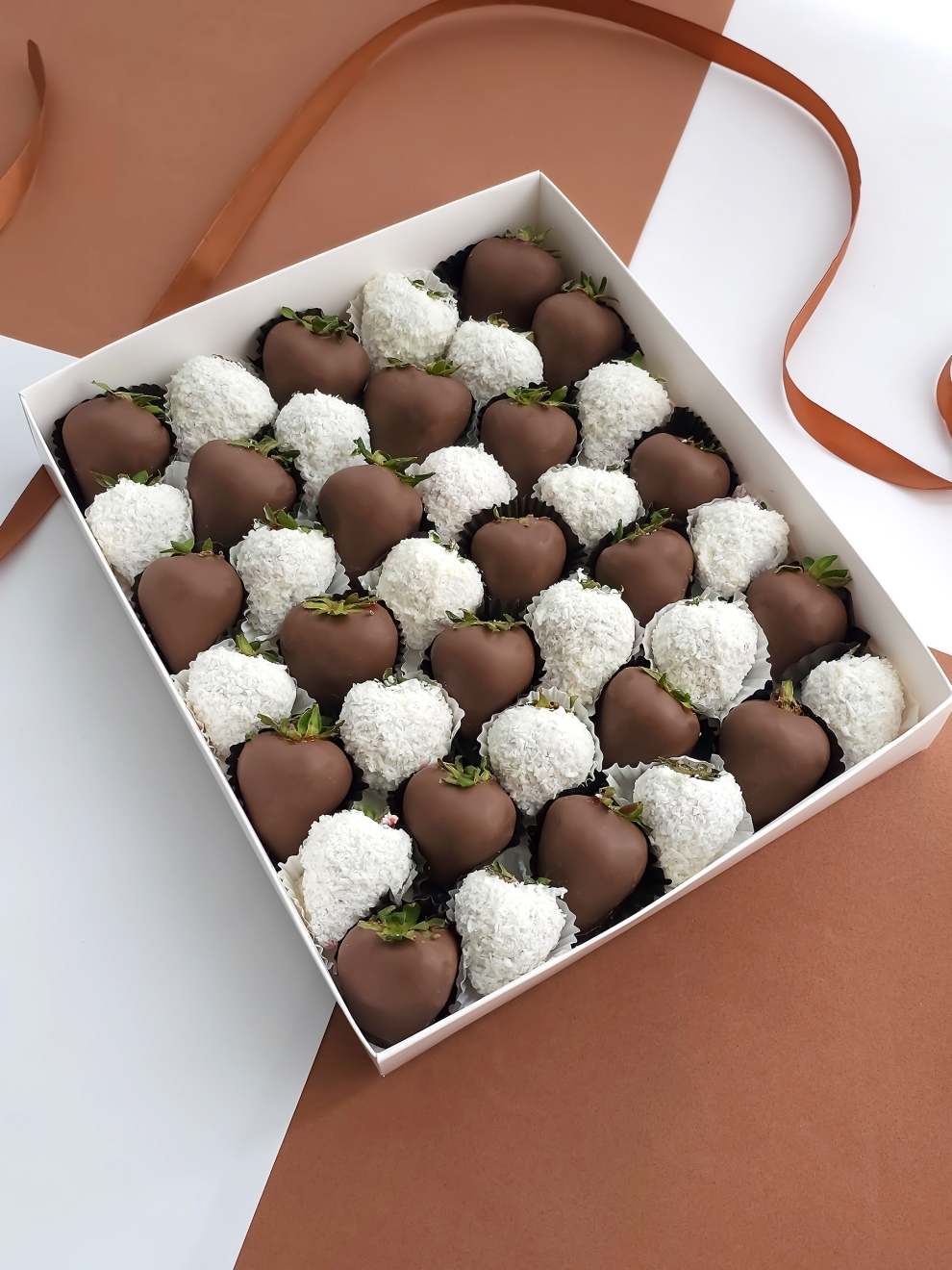 Грандиозный набор «Ин-ян» — это масштабное решение для тех, кто хочет купить большой набор клубники в шоколаде в Москве. Контраст черного и белого шоколада в объемном боксе выглядит роскошно и статусно. Решение заказать клубнику в шоколаде в Москве для праздничного стола или корпоратива в Zarifsweet подчеркнет ваше внимание к гостям. Мы предлагаем купить клубнику в бельгийском шоколаде самого высокого класса, где каждая ягода — результат кропотливого труда. Наша доставка клубники в шоколаде в Москве бережно привезет этот внушительный сет по вашему адресу. Выбирайте масштаб и безупречный вкус на Zarifsweet.ru.