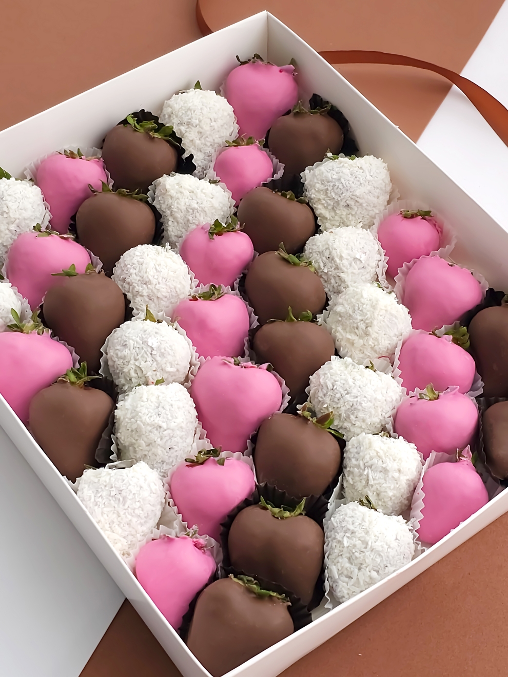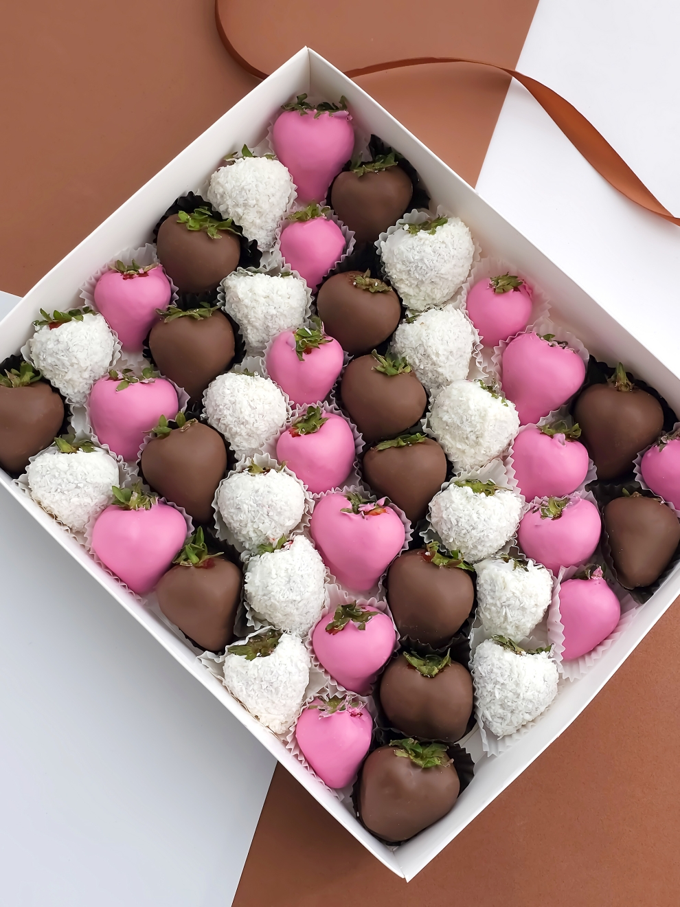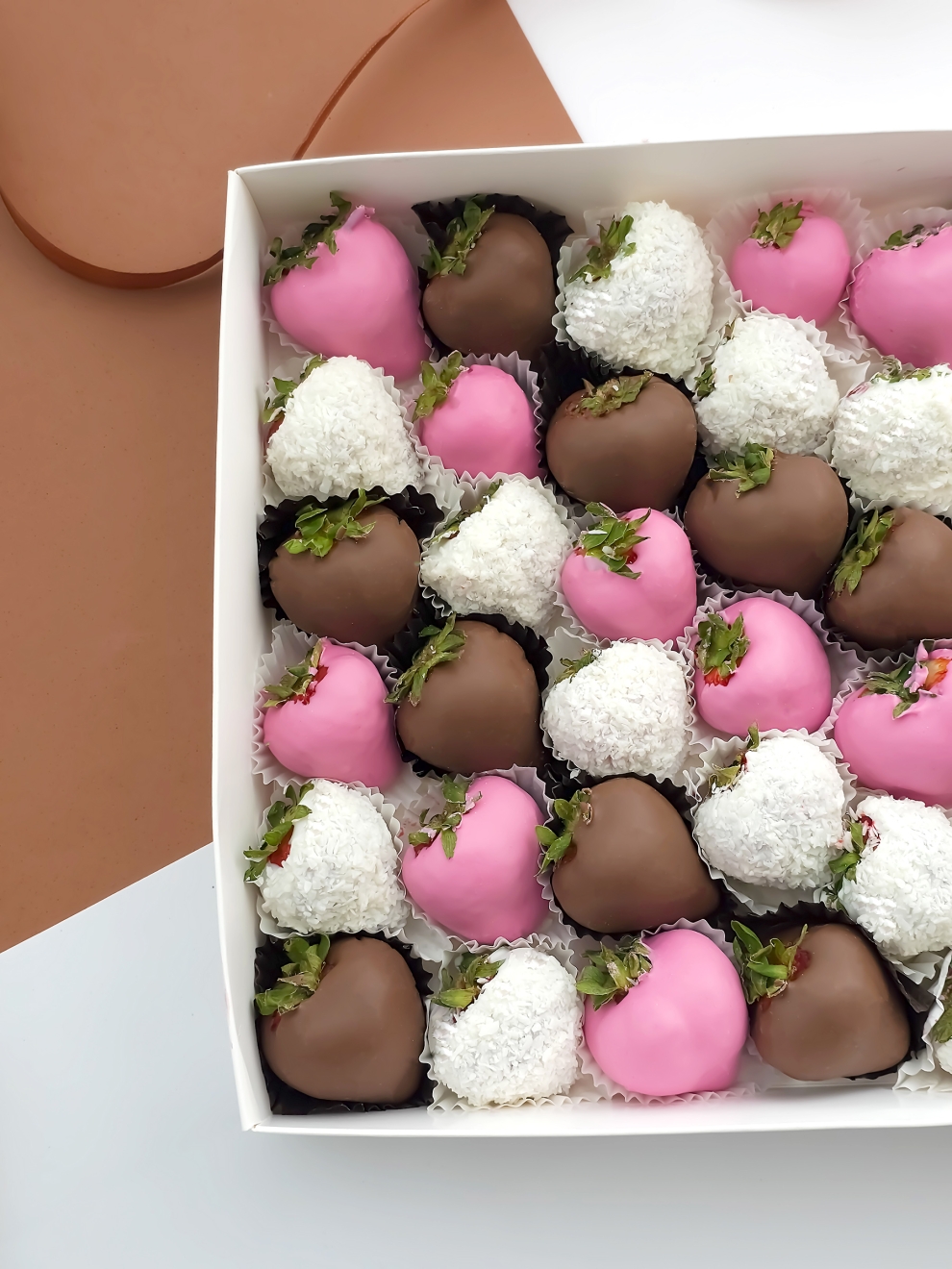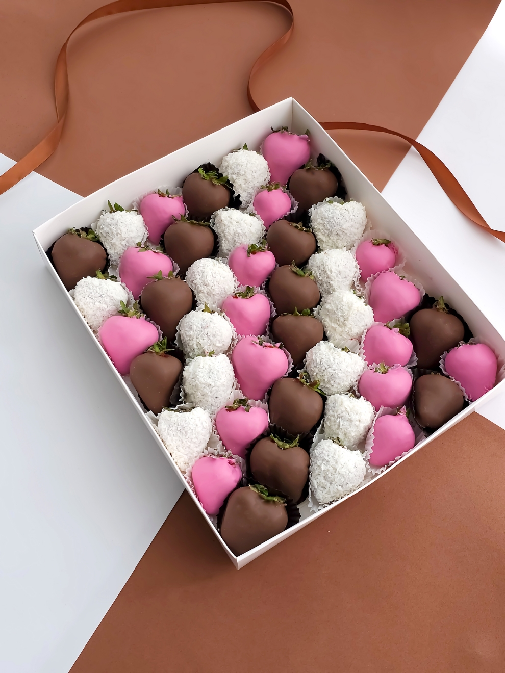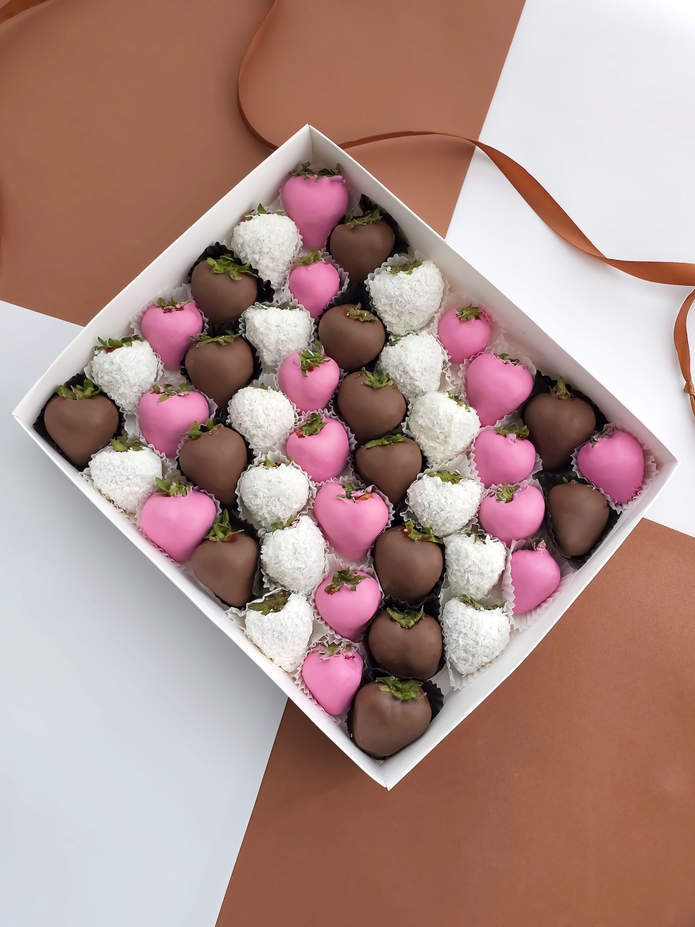 Внушительный и грандиозный набор «Сладкие моменты» напомнит вам о том, как важно ценить каждое мгновение, проведенное с близкими. Если вы хотите купить клубнику в шоколаде в Москве в большой коробке, этот вариант на 40-50 ягод идеально подойдет для семейного торжества, свадьбы или корпоратива. Мы предлагаем заказать клубнику в шоколаде из самых свежих поставок, чтобы накормить большую компанию гостей элитным лакомством.