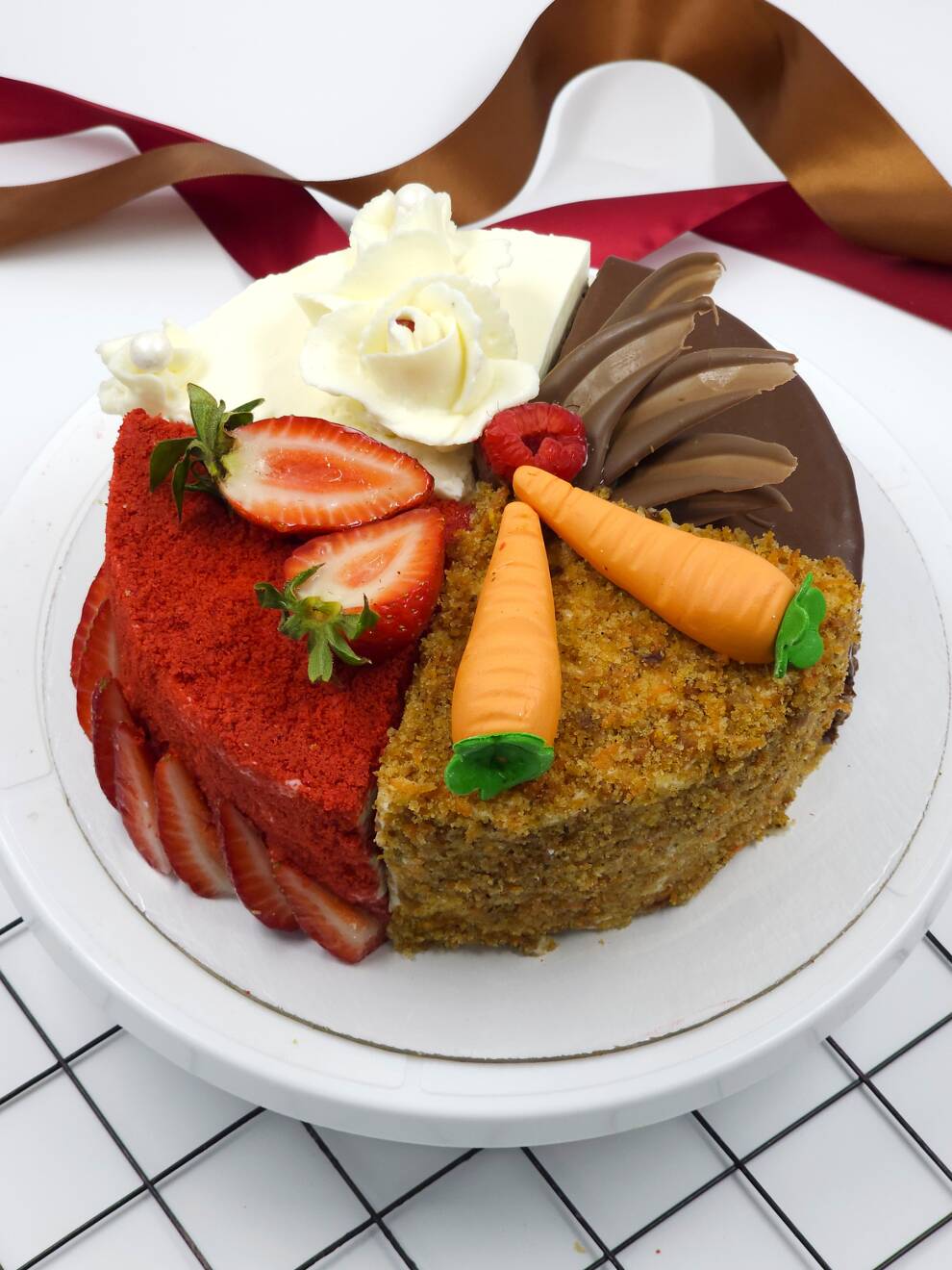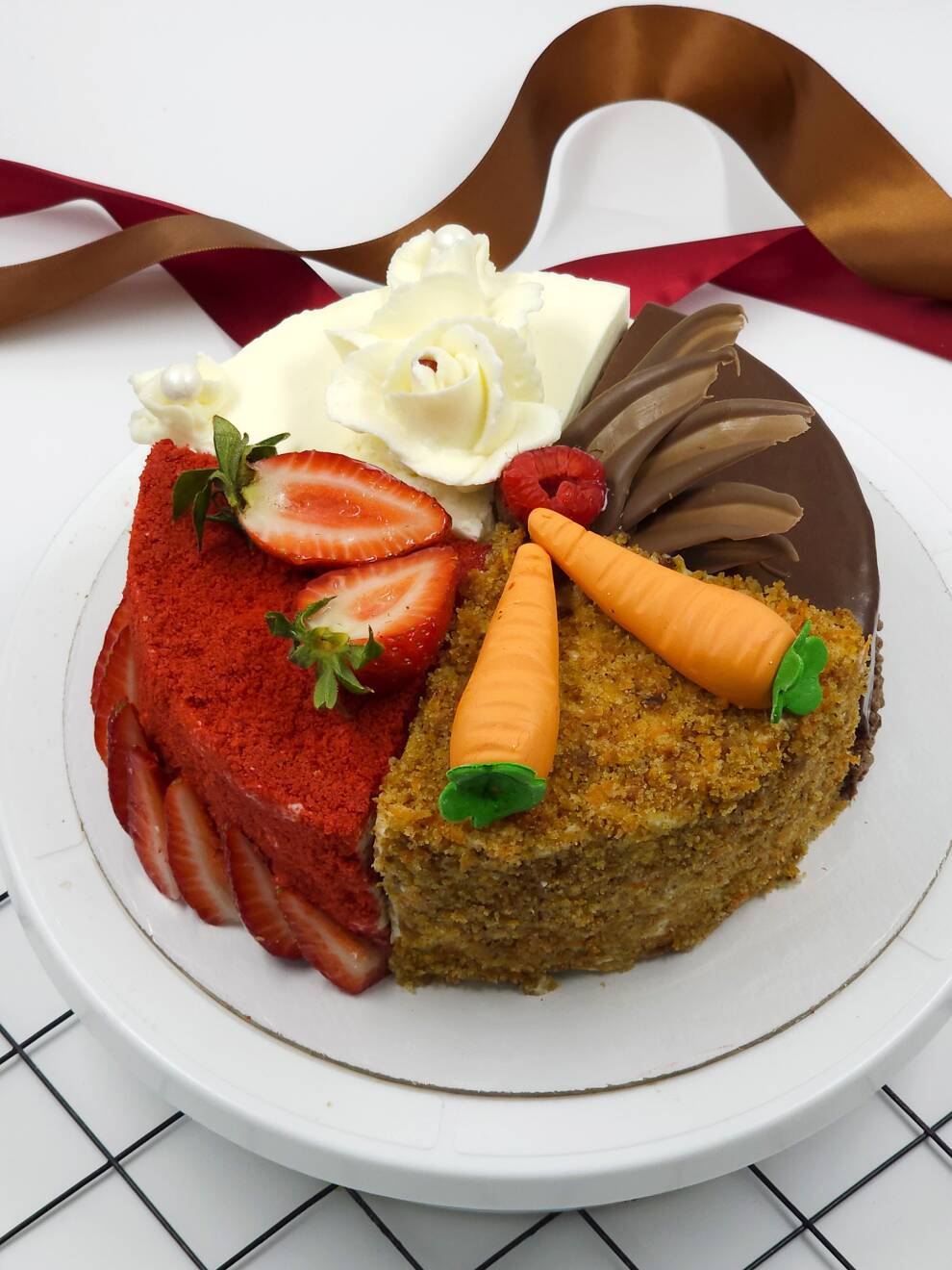 Истинные ценители гастрономических впечатлений будут в восторге от нашего эксклюзивного торта-ассорти, созданного специально для тех, кто планирует заказать торт в Москве самого высокого качества. Этот уникальный торт на заказ, объединивший в себе четыре легендарных вкуса — пряный Морковный, нежный Красный бархат, насыщенную Прагу и воздушный Маковый шедевр, признан эталоном среди кондитерской продукции. Если вы решите купить торт в мастерской Zarifsweet, то получите безупречный калейдоскоп текстур: от влажных коржей с ароматом корицы до благородного шоколадного профиля и пористого бисквита. Такой праздничный торт с доставкой, украшенный ягодами, шоколадом и кремовой розой, станет главным событием любого торжества, будь то уютное чаепитие или пышный день рождения.
