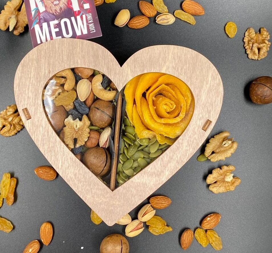 Этот презент станет идеальным выбором для тех, кому вы хотите выразить свою любовь и искреннюю признательность. Набор великолепно подойдет для романтического свидания, годовщины или как трогательный сюрприз для мамы на День матери и 8 Марта. «Сладкое сердце» — это не просто набор орехов и сухофруктов подарочный, а красивый способ проявить заботу о здоровье дорогого человека.