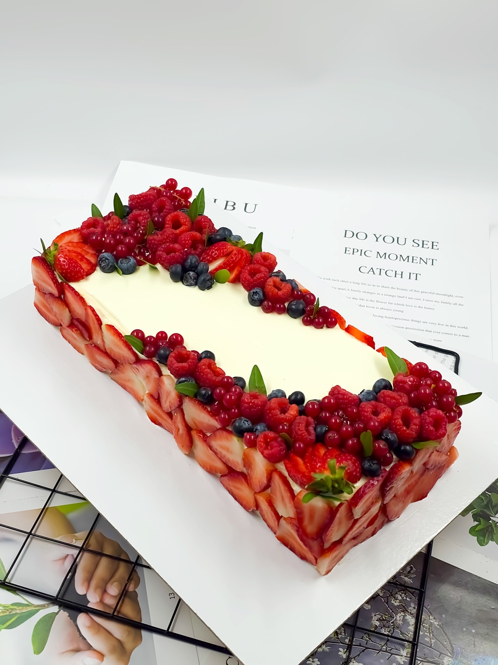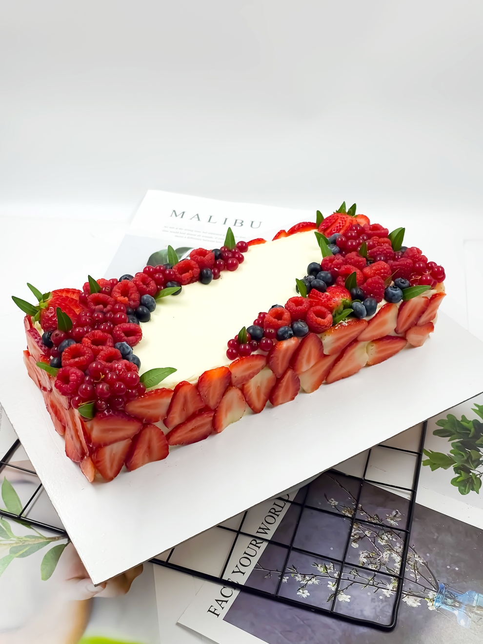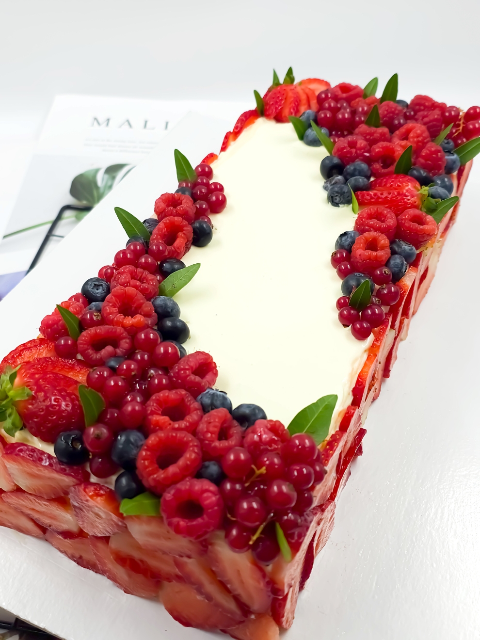- Нежный ванильный бисквит: яйцо куриное, сахар, сыр маскарпоне, сливки натуральные 33%, пшеничная мука, молоко, сливочное масло 82,5%, спелая голубика и клубника, смородина и малина.