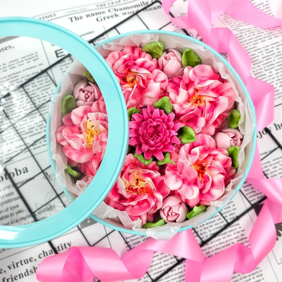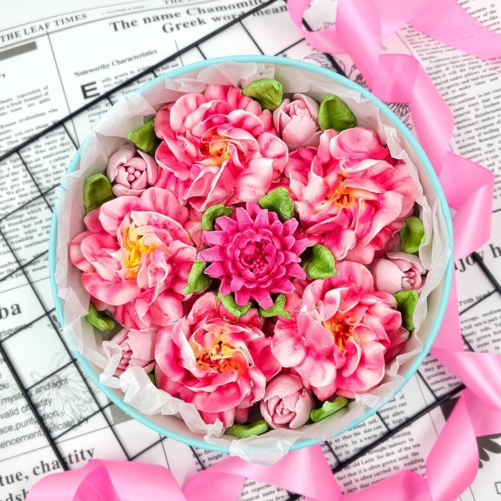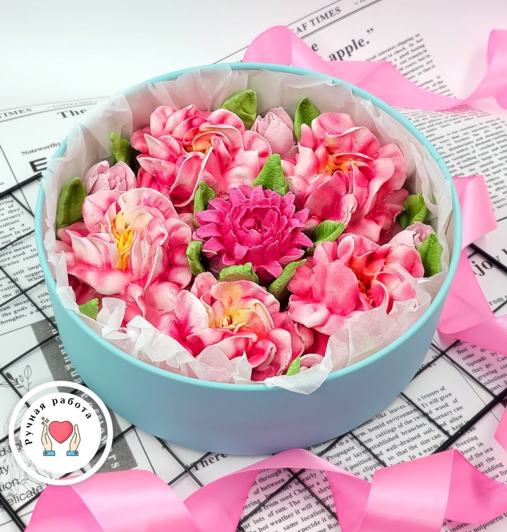 Специализированный набор «Нежные пионы» в коробке — это выбор для истинных фанатов этих пышных цветов, желающих заказать цветы из зефира в Москве. Каждый пион в коробке выполнен с потрясающей детализацией, передающей объем и хрупкость живого бутона. Купить цветы из зефира в Zarifsweet — значит подарить пионы, которые никогда не завянут. Этот зефирный подарок станет воплощением весенней романтики в любой сезон, радуя получателя своим натуральным вкусом.
